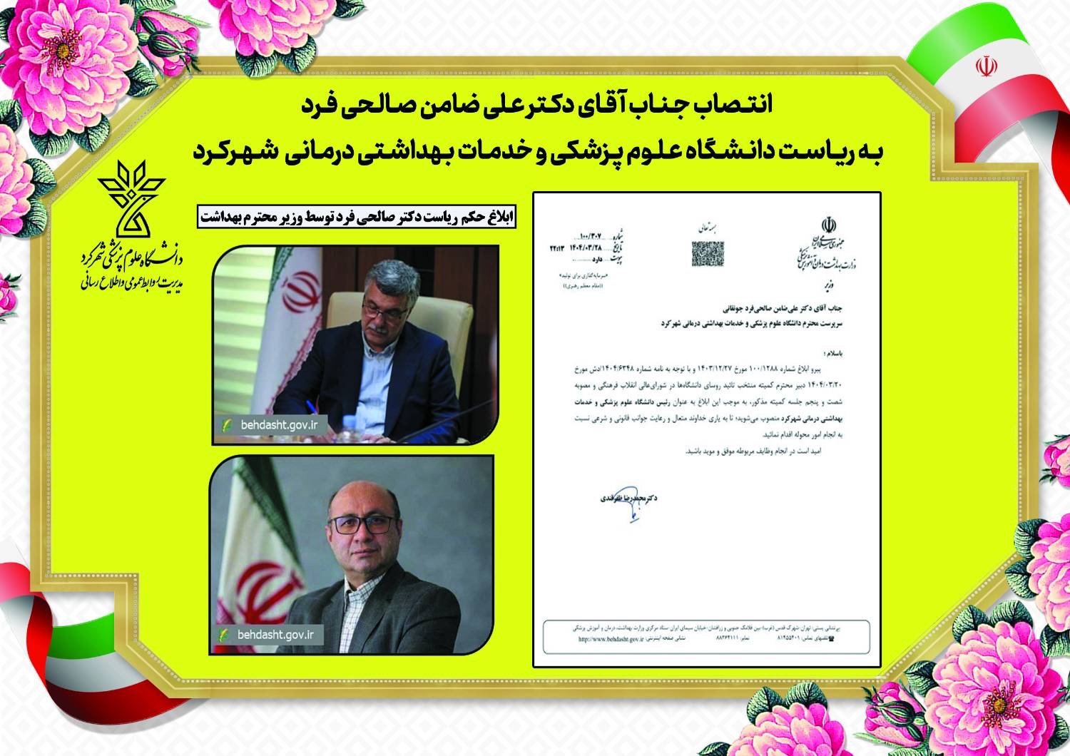 از سوی وزیر بهداشت؛ حکم "ریاست دانشگاه علوم پزشکی شهرکرد" ابلاغ شد